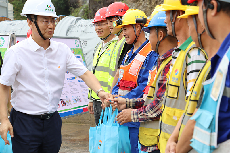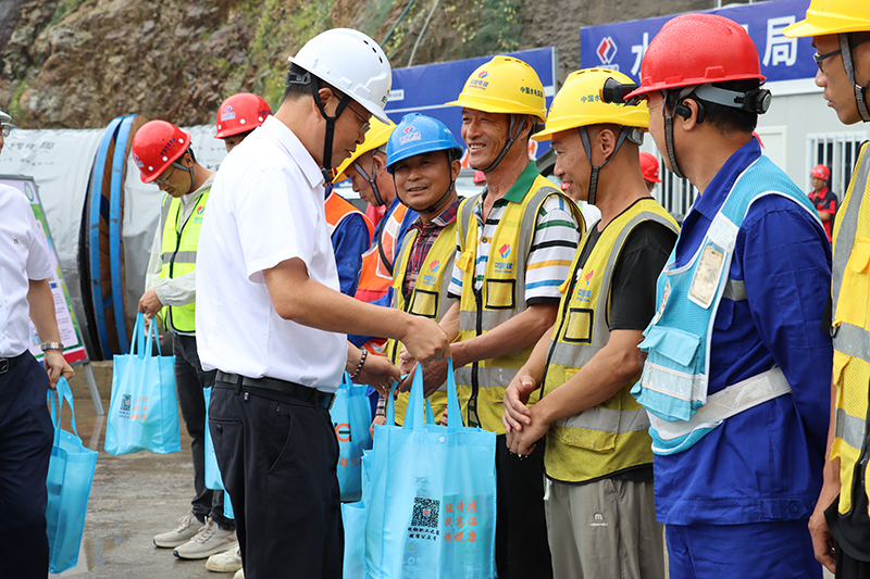 在慶元抽蓄,慰問組先后深入通風兼安全洞、永久砂拌場及EPC 項目部等關鍵施工與管理現場,實地察看工程進度、安全生產及防暑降溫措施落實情況,并與一線員工親切交流,叮囑大家在高溫作業中注意勞逸結合,確保人身安全與工程質量“雙保障”。