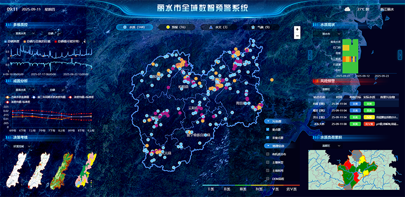 2020年,浙江省環(huán)保集團(tuán)麗水生態(tài)環(huán)境科技有限公司以麗水市生態(tài)環(huán)境質(zhì)量監(jiān)測(cè)網(wǎng)絡(luò)項(xiàng)目為基石成立,依托先進(jìn)的GIS與數(shù)據(jù)可視化技術(shù),精心打造了全域生態(tài)環(huán)境監(jiān)測(cè)預(yù)警系統(tǒng)。該系統(tǒng)共接收474個(gè)站點(diǎn)數(shù)據(jù),其中麗水環(huán)科自建站點(diǎn)329個(gè),實(shí)時(shí)匯聚了全市水域、大氣、噪聲、輻射、雷達(dá)等多元監(jiān)測(cè)數(shù)據(jù),日均處理數(shù)據(jù)30萬條,通過智能感知網(wǎng)絡(luò)實(shí)現(xiàn)全要素環(huán)境數(shù)據(jù)的統(tǒng)一管理與協(xié)同分析,使被動(dòng)的環(huán)境治理轉(zhuǎn)向主動(dòng)的環(huán)境預(yù)警。